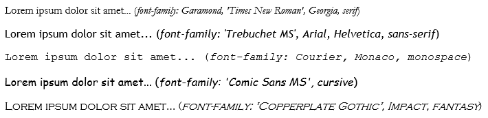 Последним указывается семейство шрифта, он используется, если в системе ни один из перечисленных не найден.