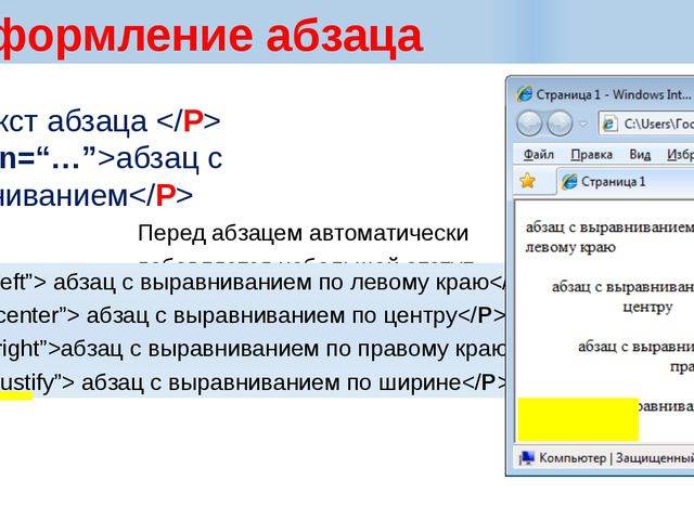 Примечание: В целях прямой совместимости и надлежащей практики кодирования рекомендуется использовать как открывающий, так и закрывающий теги для абзацев.