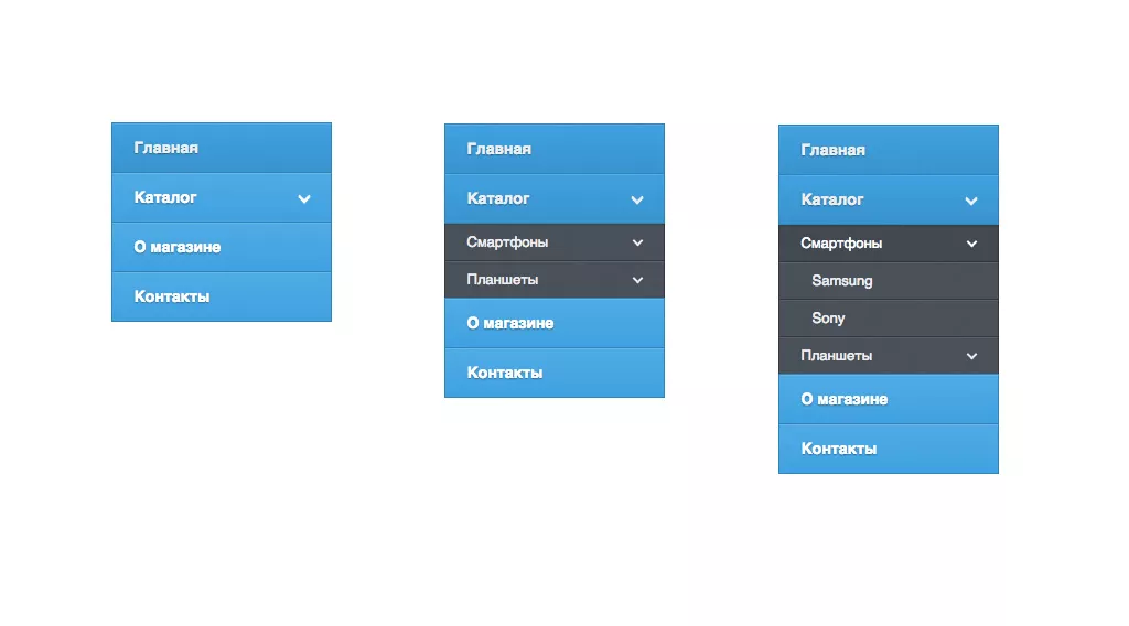 Самое главное понять принцип, потом самостоятельно сможете сделать более сложное. Само меню размечается следующим фрагментом html кода: