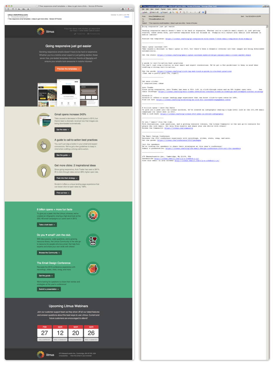 Первый шаг в создании успешного электронного письма в формате HTML — это знать, как его будут читать. Если, например, все подписчики будут читать вашу электронную почту в своей корпоративной электронной почте Outlook, это может указать вам на использование открытого текста.