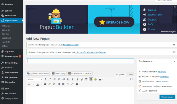 2. Выберите необходимый дизайн и настройки Всплывающее окно