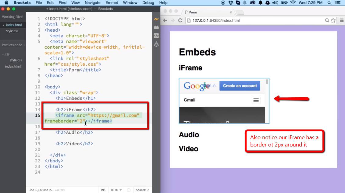 1(по умолчанию) рисует рамку вокруг этого кадра. Значение0удаляет границу вокруг этого фрейма, но вместо этого вы должны использовать свойство CSSborderдля управленияграницы.-