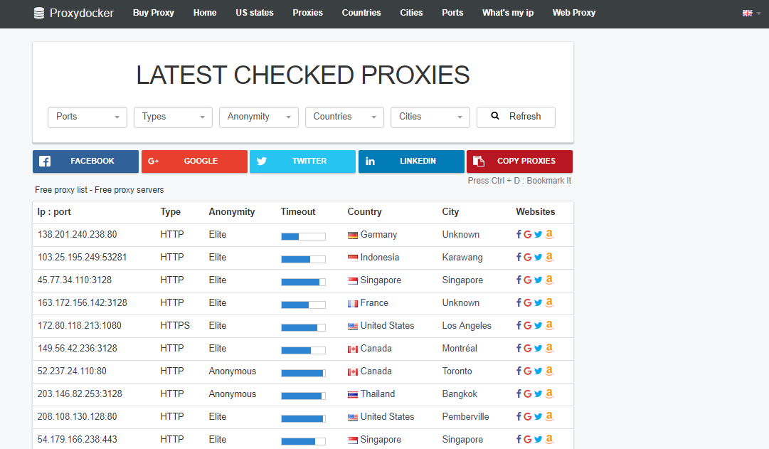 | Название | Fresh Proxy List | Free-Proxy.cz | |||||||||||||||