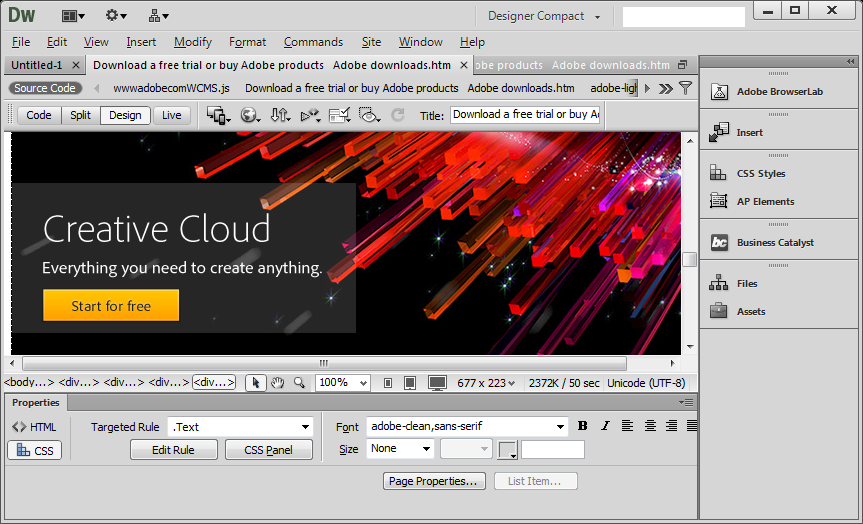 Adobe Dreamweaver CC — это известный инструмент для создания и развёртывания сайтов, который считается лучшим решением среди WYSIWYG и других, более традиционных редакторов HTML.