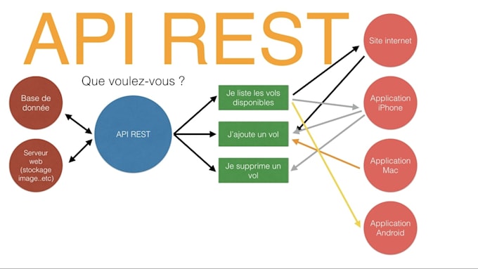 API — это то, как два компьютера общаются друг с другом. Сервер имеет данные и устанавливает язык, в то время как клиент использует этот язык для запроса информации с сервера. Серверы не отправляют данные без запроса клиента, хотя разработчики нашли некоторые способы обойти это с помощью веб-перехватчиков.