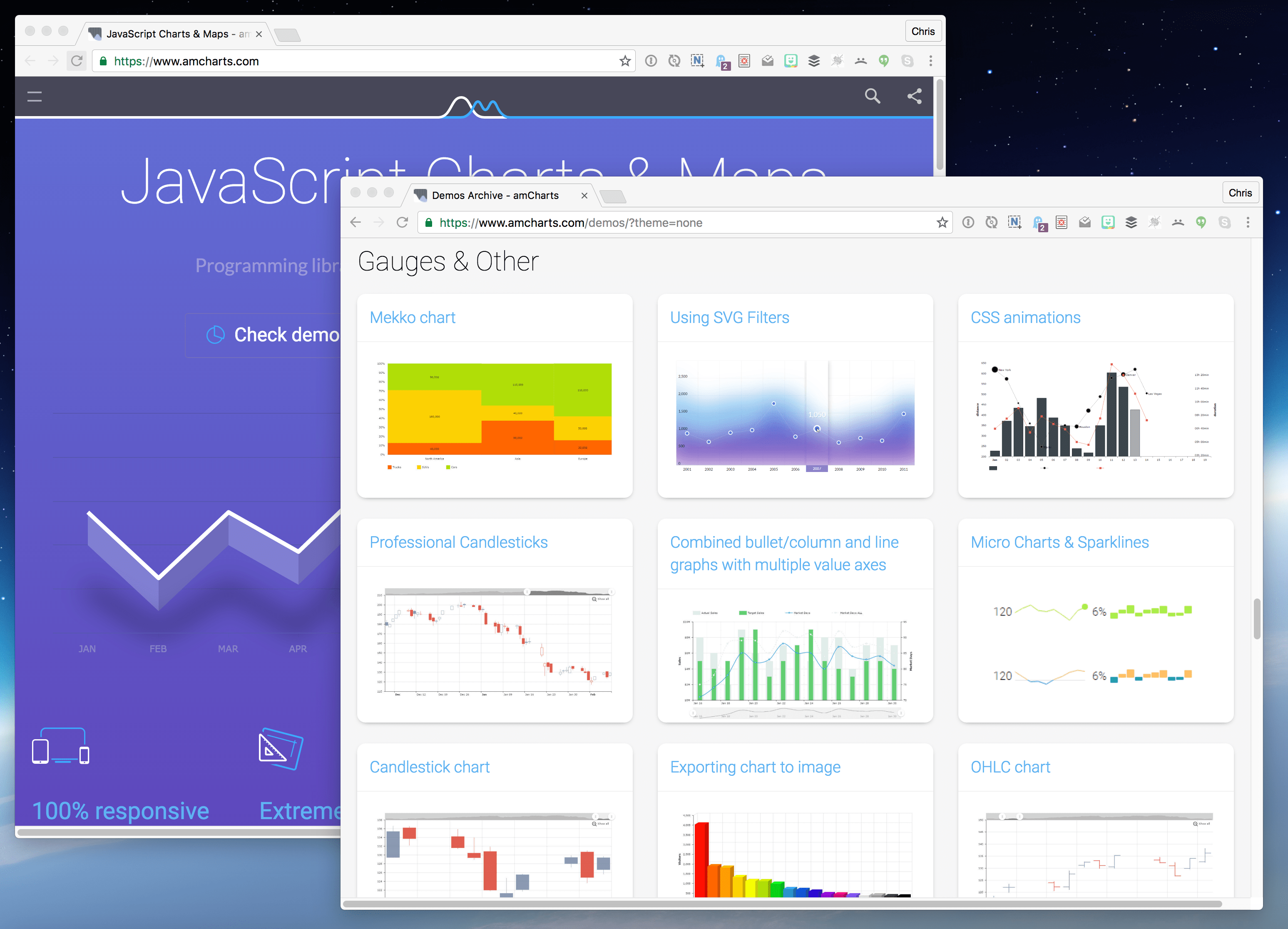 Библиотека идеальна для новичков, иллюстрирует данные из огромных баз данных, конечные графики адаптивны, что обеспечивает одинаковый пользовательский опыт для всех посетителей.