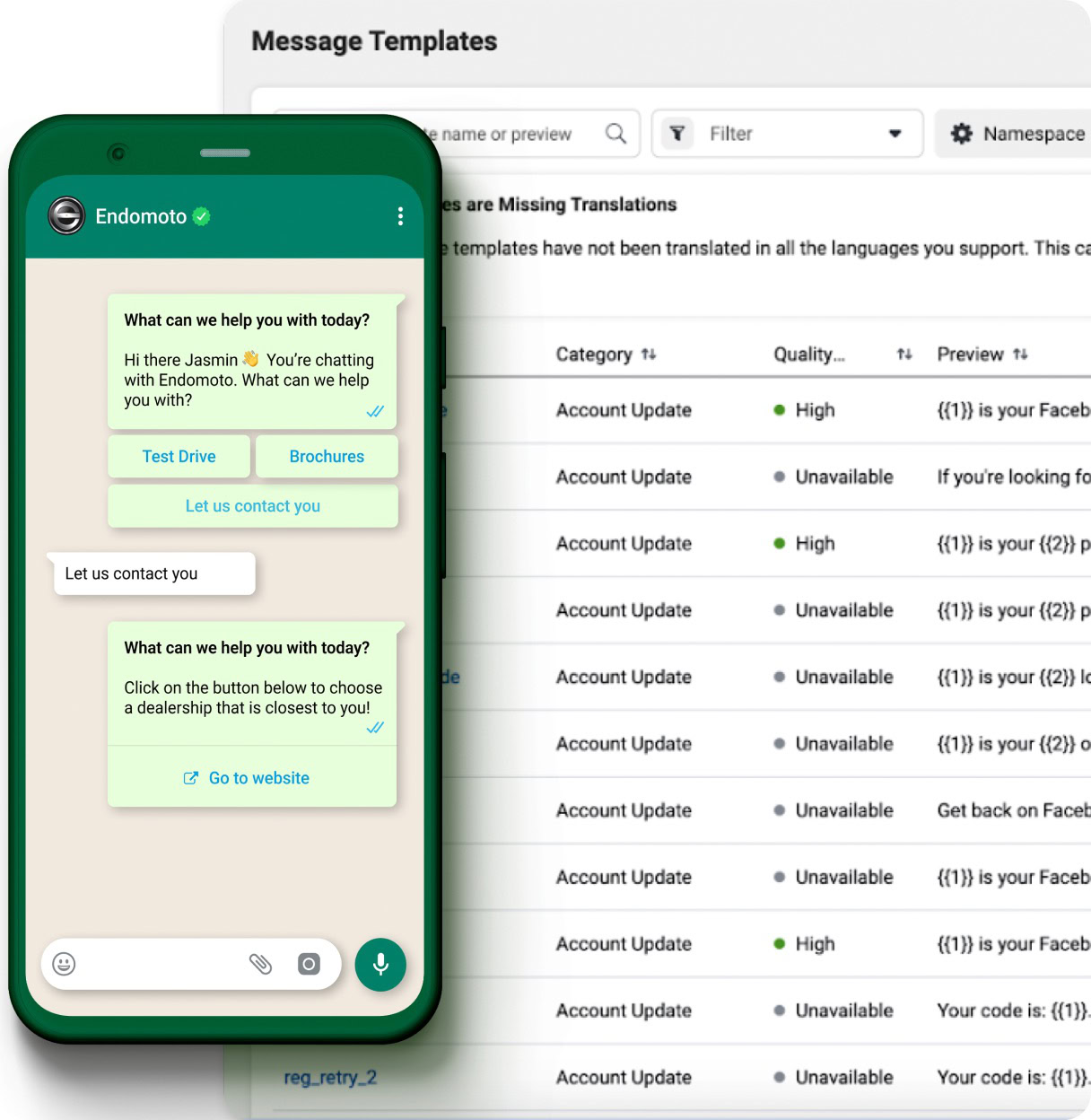 - Π‘ΡΠ΅Π΄ΡΡΠ²Π° ΠΎΠ±ΠΌΠ΅Π½Π° ΡΠΎΠΎΠ±ΡΠ΅Π½ΠΈΡΠΌΠΈ: ΠΡΠΏΠΎΠ»ΡΠ·ΡΠΉΡΠ΅ ΡΠ°Π±Π»ΠΎΠ½Ρ ΡΠΎΠΎΠ±ΡΠ΅Π½ΠΈΠΉ WhatsApp, ΡΡΠΎΠ±Ρ Π·Π°ΡΠ°Π½Π΅Π΅ ΡΠΎΠ·Π΄Π°Π²Π°ΡΡ ΠΊΠ»ΡΡΠ΅Π²ΡΠ΅ ΡΠ°Π·Π³ΠΎΠ²ΠΎΡΡ. Π‘ΠΎΠ·Π΄Π°Π²Π°ΠΉΡΠ΅ Π°Π²ΡΠΎΠΌΠ°ΡΠΈΡΠ΅ΡΠΊΠΈΠ΅ ΠΏΡΠΈΠ²Π΅ΡΡΡΠ²Π΅Π½Π½ΡΠ΅ ΡΠΎΠΎΠ±ΡΠ΅Π½ΠΈΡ Π΄Π»Ρ Π²Π·Π°ΠΈΠΌΠΎΠ΄Π΅ΠΉΡΡΠ²ΠΈΡ Ρ Π½ΠΎΠ²ΡΠΌΠΈ ΠΊΠ»ΠΈΠ΅Π½ΡΠ°ΠΌΠΈ. ΠΡΠ»ΠΎΠΆΠΈΡΠ΅ ΡΠΎΠΎΠ±ΡΠ΅Π½ΠΈΡ, ΡΡΠΎΠ±Ρ ΡΠΎΠΎΠ±ΡΠΈΡΡ ΠΊΠ»ΠΈΠ΅Π½ΡΠ°ΠΌ, ΠΊΠΎΠ³Π΄Π° Π²Ρ Π²Π΅ΡΠ½Π΅ΡΠ΅ΡΡ, ΠΈΠ»ΠΈ ΡΠΎΠ·Π΄Π°ΠΉΡΠ΅ Π±ΡΡΡΡΡΠ΅ ΠΎΡΠ²Π΅ΡΡ, ΡΡΠΎΠ±Ρ ΠΎΡΠ²Π΅ΡΠΈΡΡ Π½Π° ΡΠ°ΡΡΠΎ Π·Π°Π΄Π°Π²Π°Π΅ΠΌΡΠ΅ Π²ΠΎΠΏΡΠΎΡΡ. ΠΠΎΠΏΠΎΠ»Π½ΠΈΡΠ΅Π»ΡΠ½ΡΠ΅ ΡΠ²Π΅Π΄Π΅Π½ΠΈΡ ΠΎΠ± ΠΈΠ½ΡΡΡΡΠΌΠ΅Π½ΡΠ°Ρ