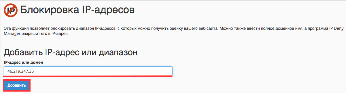 Блокировка IP адресов средствами cPanel