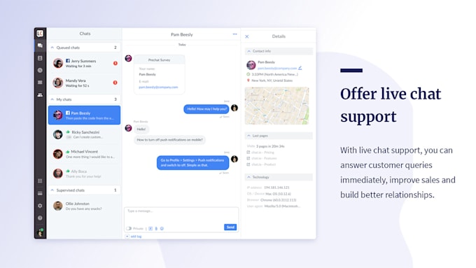 - Save time and simplify — monitor and chat with visitors on multiple websites from a single dashboard interface