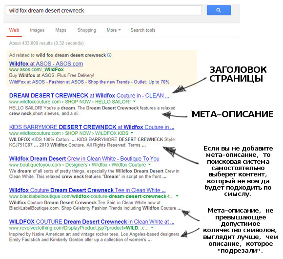 Постарайтесь сделать описание страницы интересным и содержательным для пользователей, которые увидят его в качестве сниппета на странице.