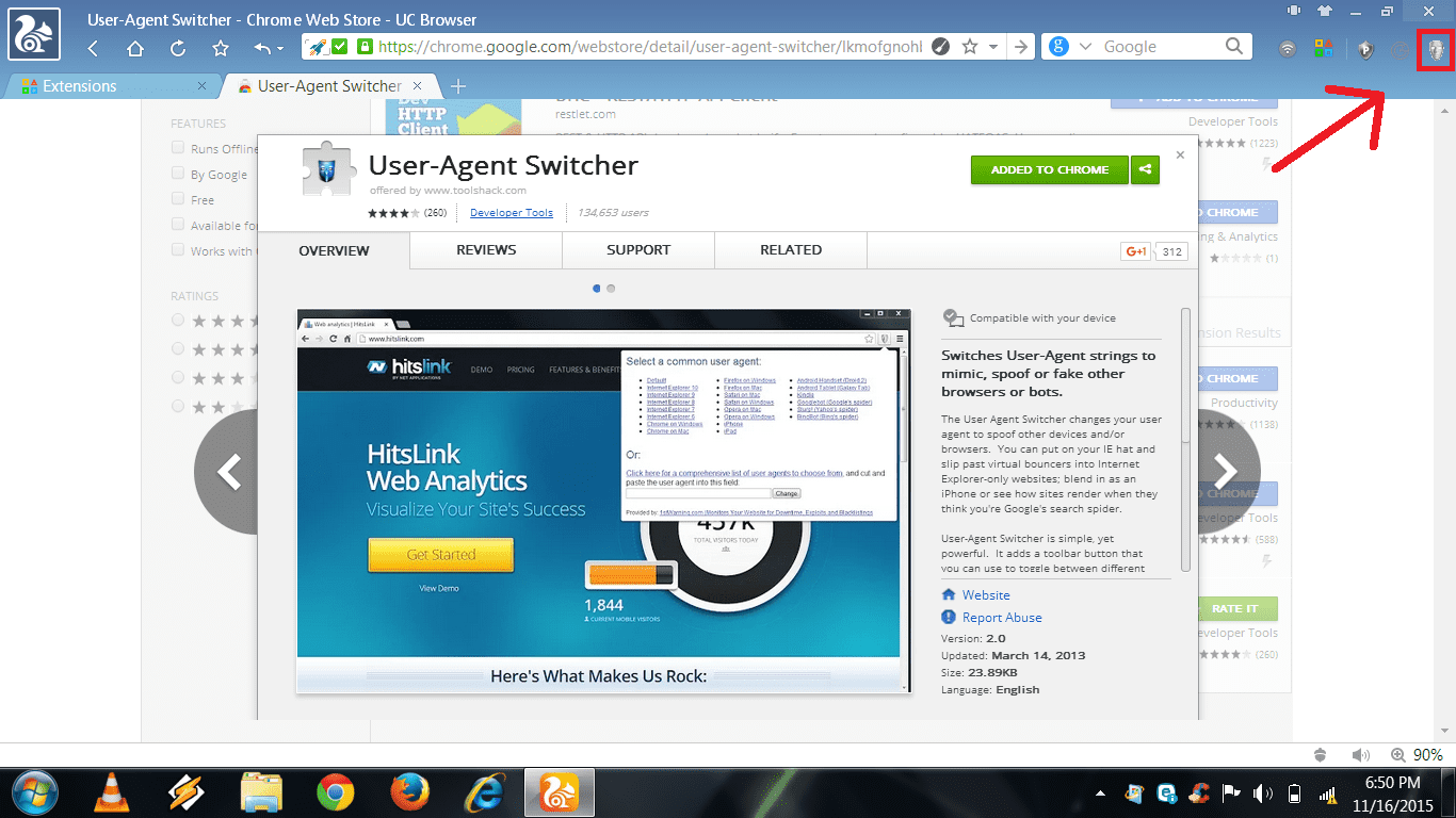 Затем нам нужно только выбрать, какой пользовательский агент мы хотим использовать для просмотра, введя его в красное поле, изображенное ниже: