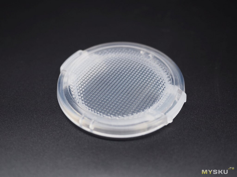 Эксподиск, сторона, обращенная наружу и увеличенный фрагмент микролинз.
