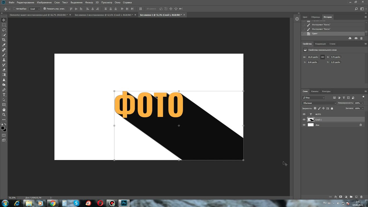 - Выберите слой Drop Shadow слоя Layer 1. Нажмите Ctrl + T , чтобы вызвать инструмент Transform . Теперь вы можете перемещать тень независимо, перетаскивая мышь.