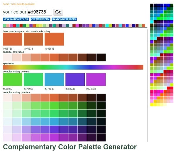 Полноэкранный дисплей генератора является несомненным плюсом, позволяя легче увидеть, насколько хорошо ваши цвета дополняют друг друга. Инструмент автоматически создает палитру для каждого созданного вами инструмента, к которой вы можете вернуться в любое время.