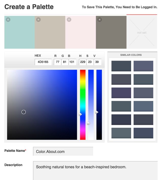 Вы можете начать со своего собственного набора цветов или выбрать случайный из COLORlovers. Затем выберите цвет наложения и отрегулируйте интенсивность. Этот инструмент предоставляет вам связную цветовую схему, но не позволяет точно настраивать отдельные цвета.