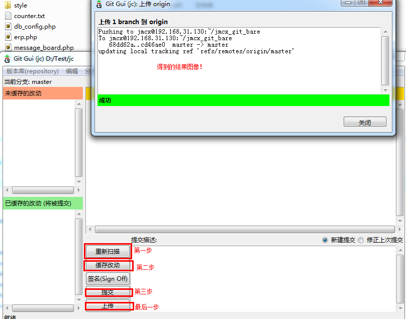 После того, как были выполнены нужные локальные коммиты, изменения можно загрузить в удаленный репозиторий с помощью команды git push origin master .