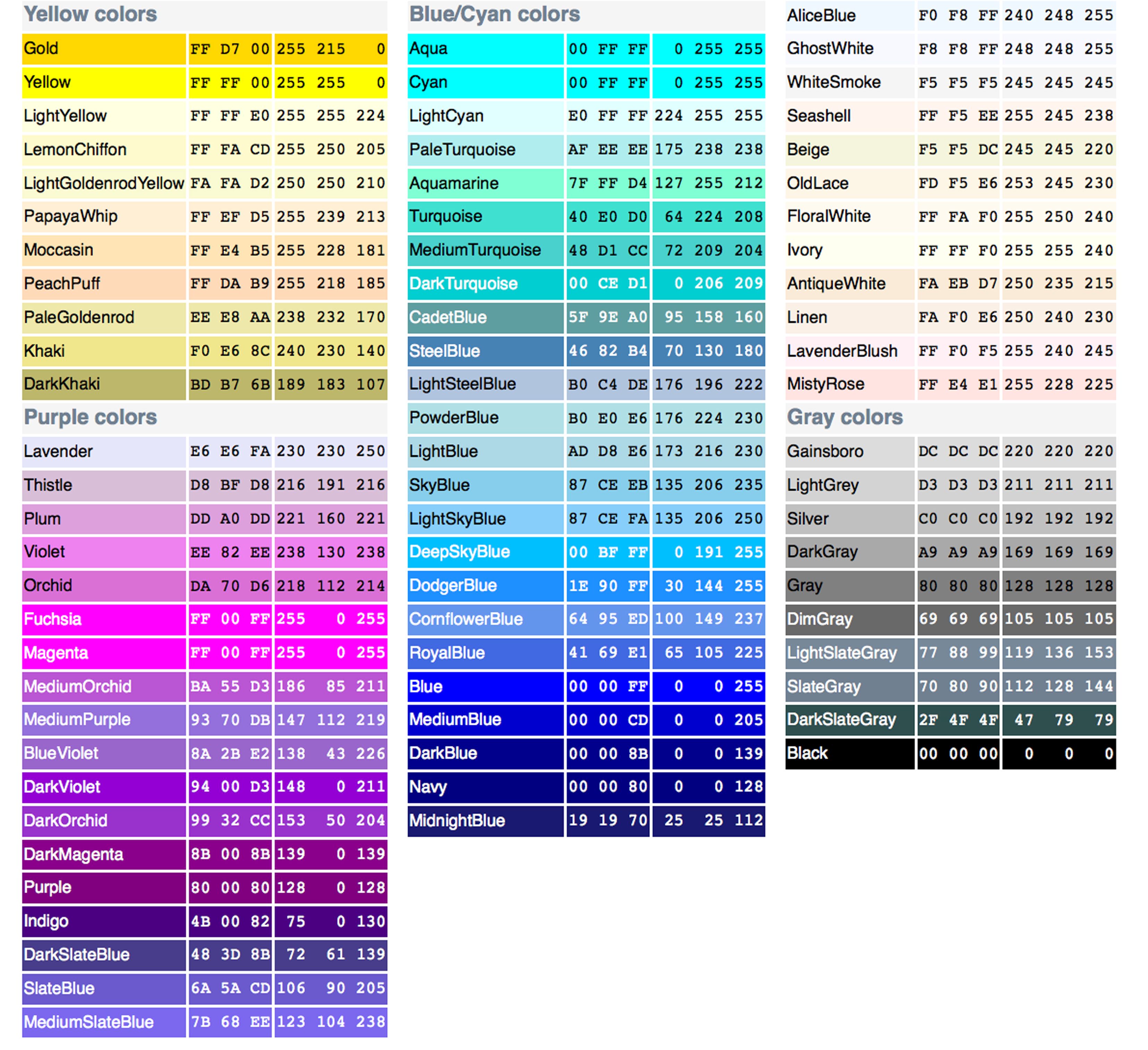 Некоторые цвета можно задавать по их названию, используя в качестве значения название цвета на английском языке.