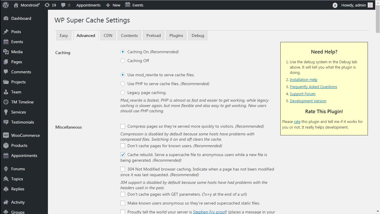 WP Super Cache представляет собой мощный плагин с большим количеством опций, многие из которых дополнительно могут улучшить производительность сайта. В панели расширенных настроек плагина предоставляется возможность гибкого управления параметрами кэширования веб-страниц.