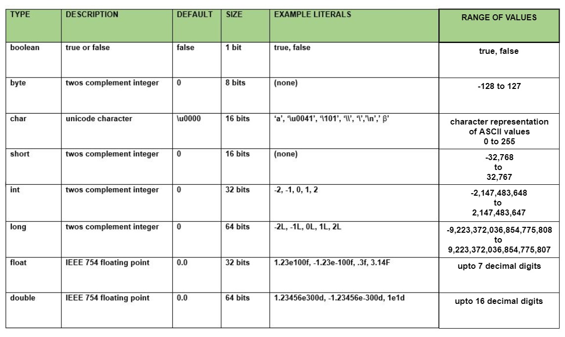 intпредставляет собой 32-разрядный подписанный примитивный тип данных Java . Переменная типа данныхintзанимает 32 бита памяти . - Допустимый диапазон: от -2 147 483 648 до 2 147 483 647 (от -2 31 до 2 31 – 1).