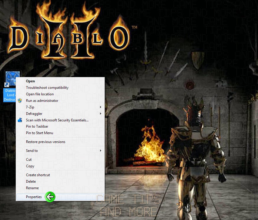 - Во-первых, щелкните правой кнопкой мыши значок Diablo 2, чтобы открыть свойства файла.