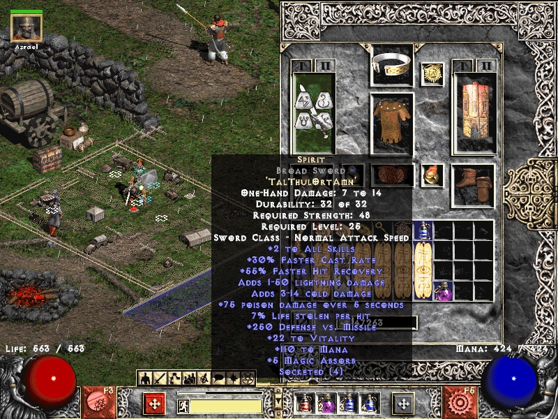 Стоит добавить, что такое большое разрешение изначально не задумывалось в Diablo, и такими классами как маг и лучница, одно только разрешение сильно облегчает игру монстров можно убивать на значительно большем расстоянии, чем в обычном разрешении 640×480.