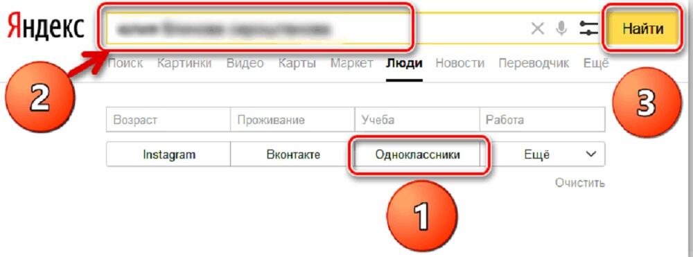(в 2020г. поиск «по людям» был встроен в основной поиск https://yandex.ru/. Добавляйте к поисковому запросу «ВК», или аббревиатуру др. соц. сети)