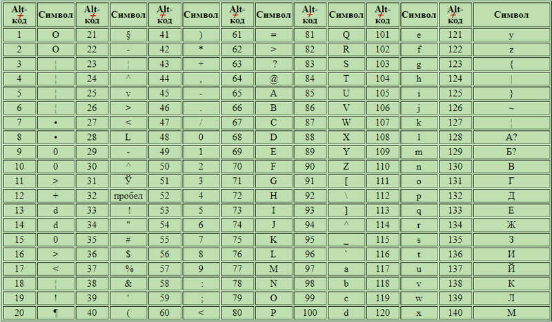 Существующих символов — а это не только буквы, цифры, знаки математические и пунктуационные, и многие другие, — гораздо больше, чем клавиш на клавиатуре компьютера. Сотрудники компании Microsoft, разработавшие систему Windows, решили эту проблему, присвоив каждому символу уникальный код, ввод которого осуществляется при помощи клавиши Alt.