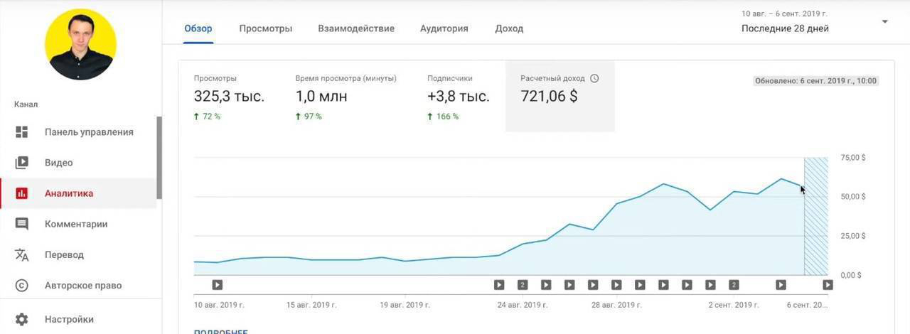 В этой статье мы видели, что успешные пользователи YouTube могут получать неплохой доход, но сумма, которую они получают, может сильно различаться. Однако в среднем канал YouTube может зарабатывать 18 долларов за 1000 просмотров рекламы. Это составляет от 3 до 5 долларов за 1000 просмотров видео. Ваши цифры будут зависеть от ваших ежедневных просмотров видео и среднего взаимодействия (CTR).