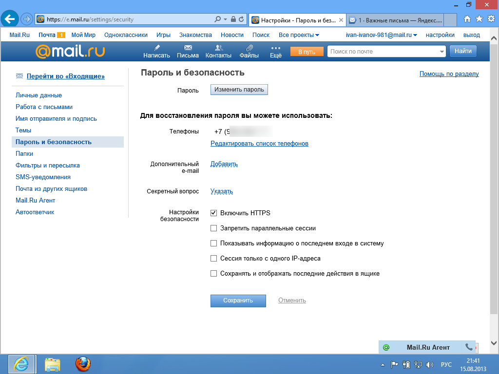 2. подключение других ящиков, чтобы получать также и новые письма.
