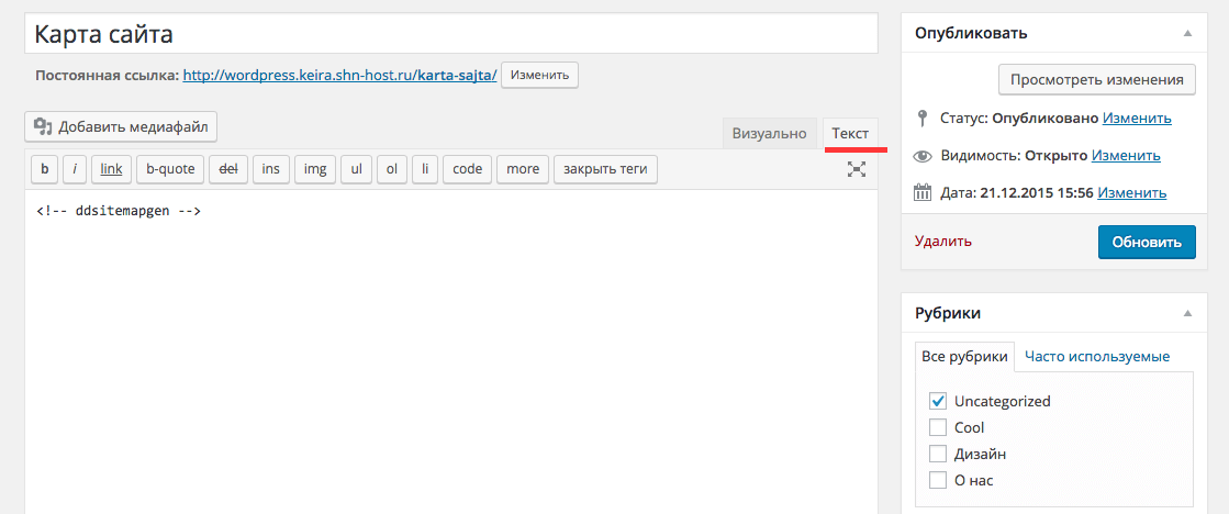 В редакторе вы также найдете несколько других разделов, среди которых «Метки» и «Рубрики».
