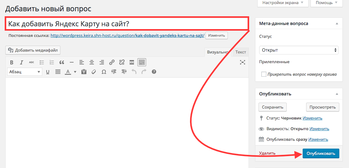 Нажмите Опубликовать , как только вы будете довольны контентом.