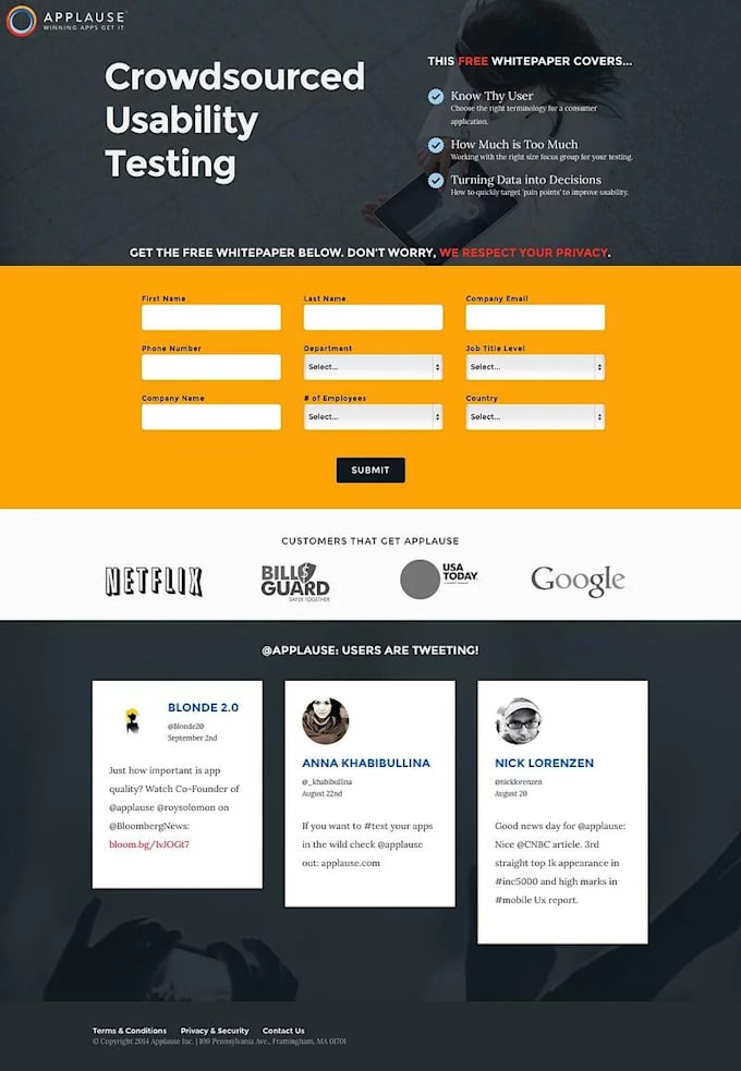 Обычно на подобных веб-страницах не размещают офферы и настойчивые предложения приобрести товар, однако предоставляют всю необходимую информацию о продукте и форму для заявок.