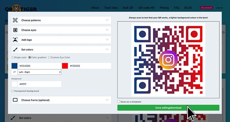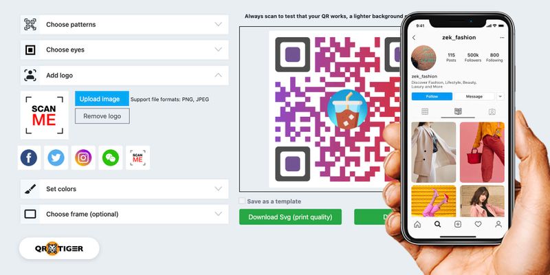 QR-код Instagram создается с помощью онлайн-генератора QR-кода с логотипом, например QRTIGER.