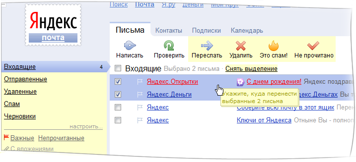 Список полных горячих клавиш Яндекс.Почты