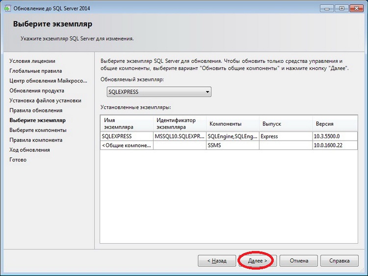 - В поле Имя SQL-сервера укажите имя компьютера (или его IP-адрес), на котором установлен SQL-сервер, и имя SQL-сервера, например, MYCOMPUTER\SQLEXPRESS.