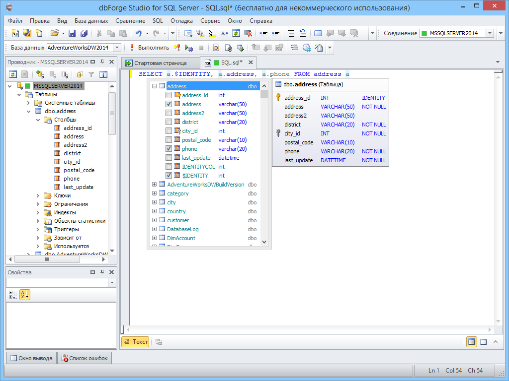 Итак, в окне запроса напишите следующий запрос к базе данных SQL Drop