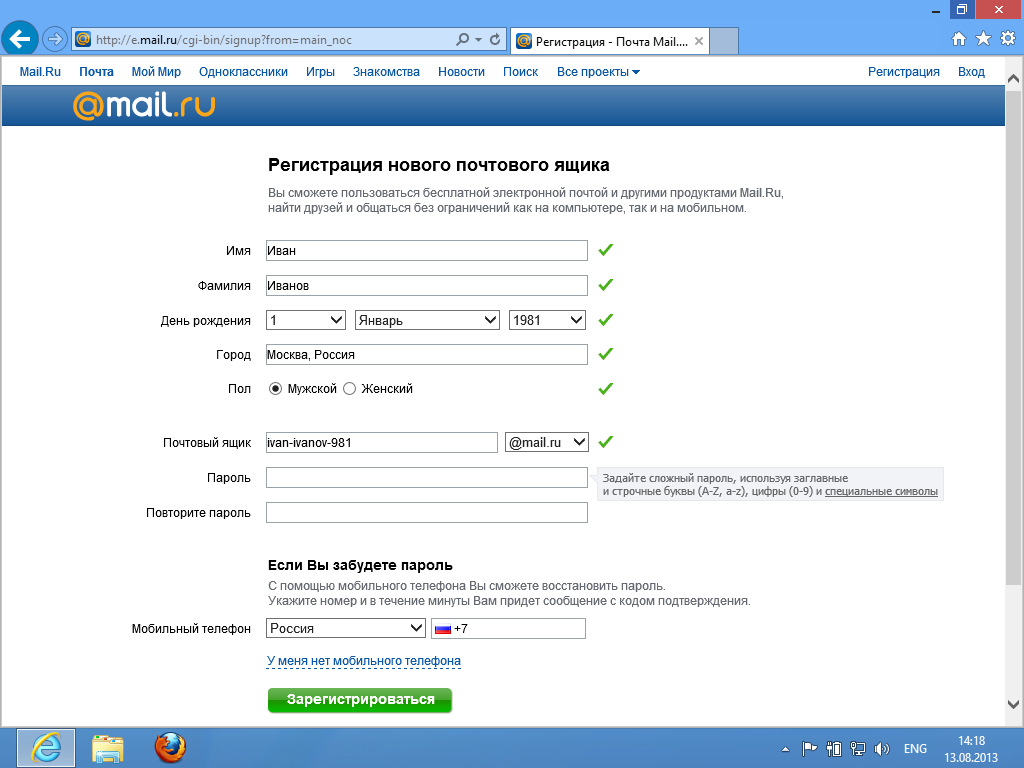 Регистрация на данных сервисах бесплатной почты очень проста.