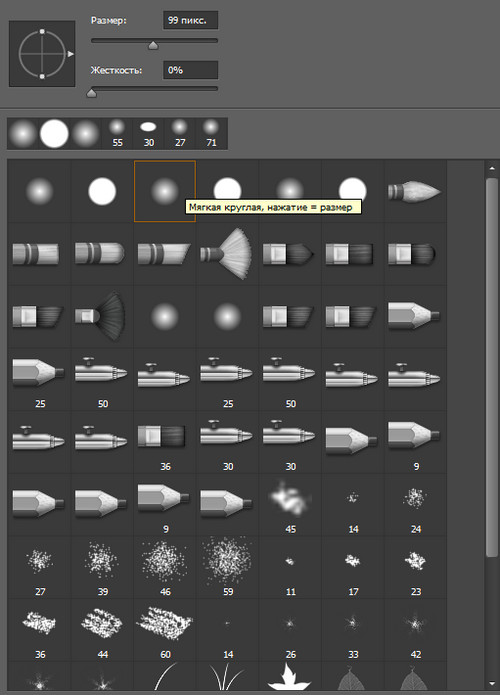 8. Выберите очень мягкую круглую кисть и установите непрозрачность кисти примерно на 20%.