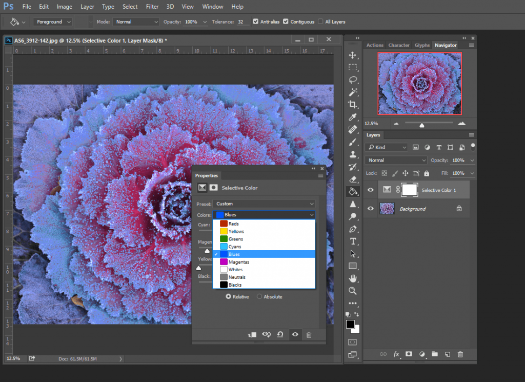 В качестве альтернативного способа создания маски, закрывающей все, кроме цветов. Я собираюсь использовать Selection .