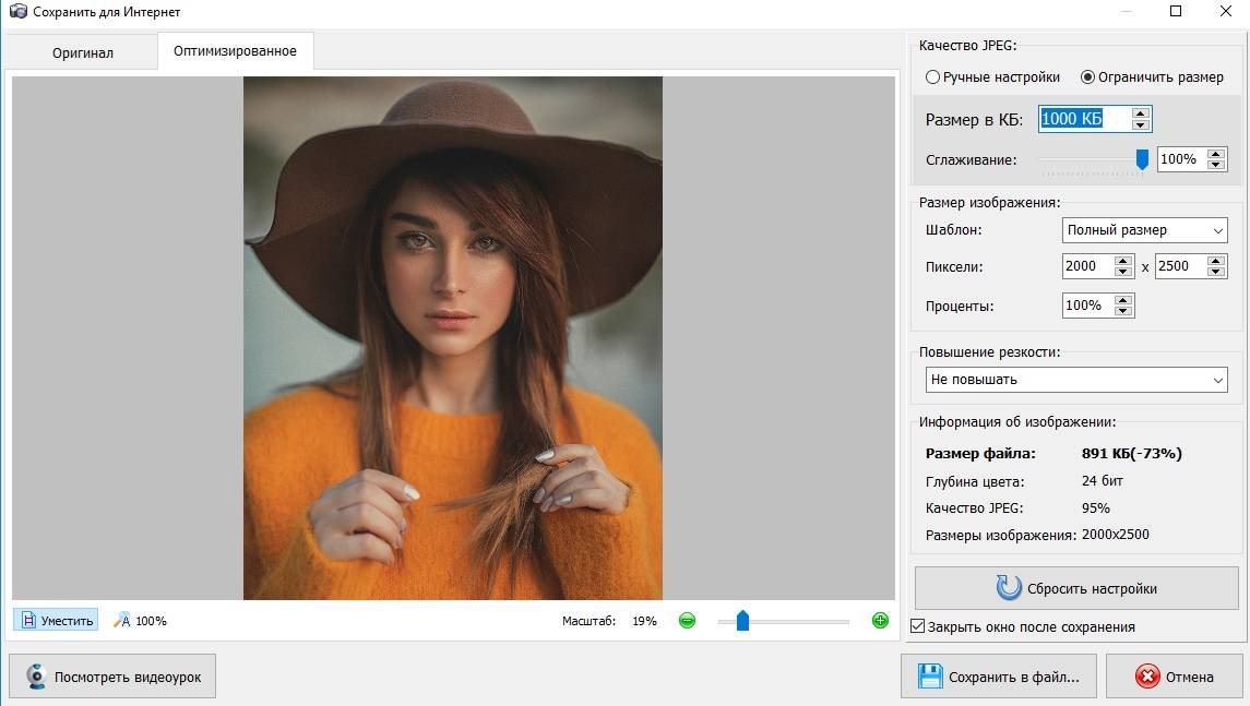 После всей процедуры сохраните файл. Затем мы получаем обработанное изображение с меньшим, предварительно настроенным весом.