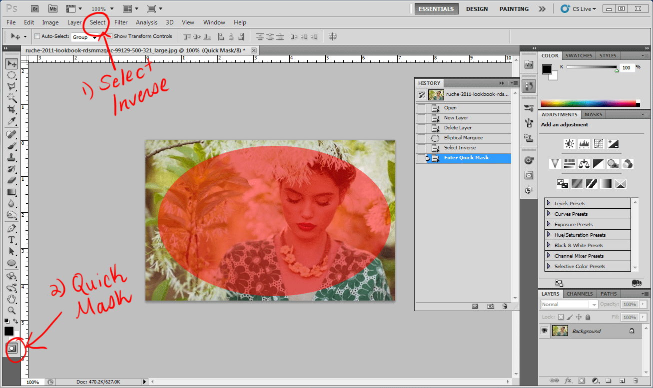 Откройте Adobe Photoshop и загрузите изображение, к которому вы хотите применить эффект границы.+Select-Inverse-then-Enter-Quick-Mask.gif)