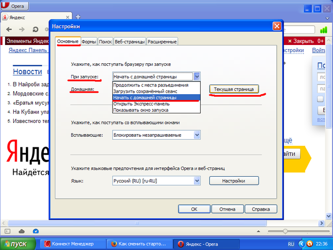 В настройках браузера