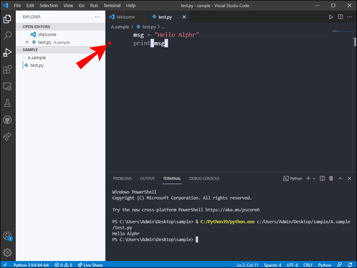 - Щелкните Выполнить и отладить , чтобы отладить код.