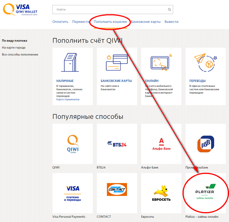 Пополнить кошелек | Основные способы, которые применяются для пополнения кошелька – с помощью перевода с банковской карты или со счета телефона и в Киви терминале. Некоторые другие банки также предлагают выполнить зачисление денег на счет. |