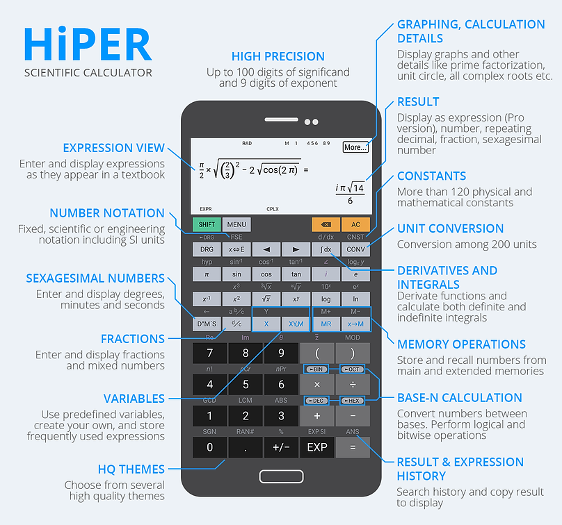 Приложение является простым помощником для быстрых вычислений с множеством основных функций, включая умножение, деление, корень и силы. Приложение также поставляется с темной темой, так что вы можете использовать эту новую технологию, чтобы ваш калькулятор выглядел более гладким и простым в использовании, а не использовать резкие цвета, представленные в различных калькуляторах, которые не могут помочь вам сосредоточиться на сложных вычислениях в этом математическом калькуляторе.