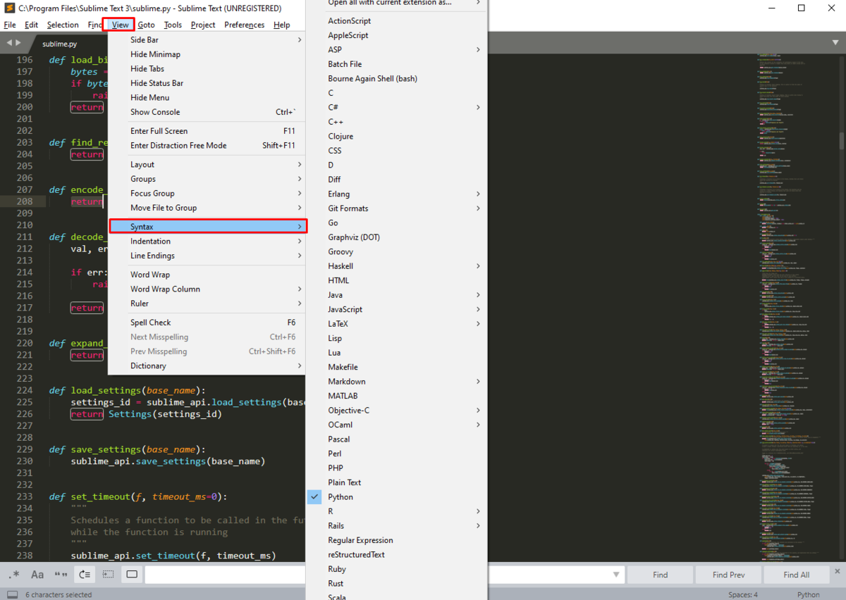 View -> Show Consoleи проверив объектview, который Sublime Text предоставляет как часть своего Python API.>>> view