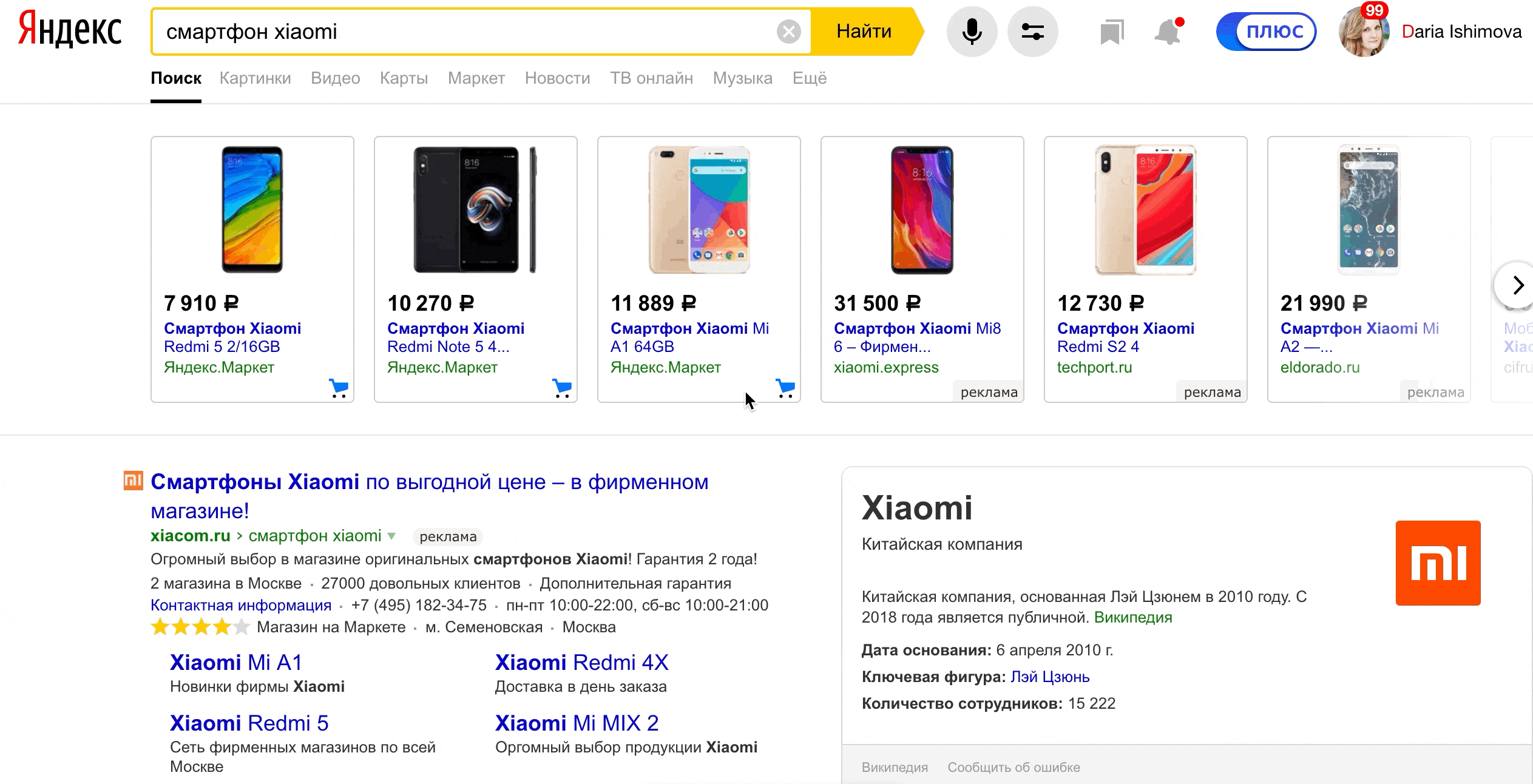 В ноябре 2018 года Яндекс запустил товарную галерею над результатами выдачи. Вот как она выглядит: