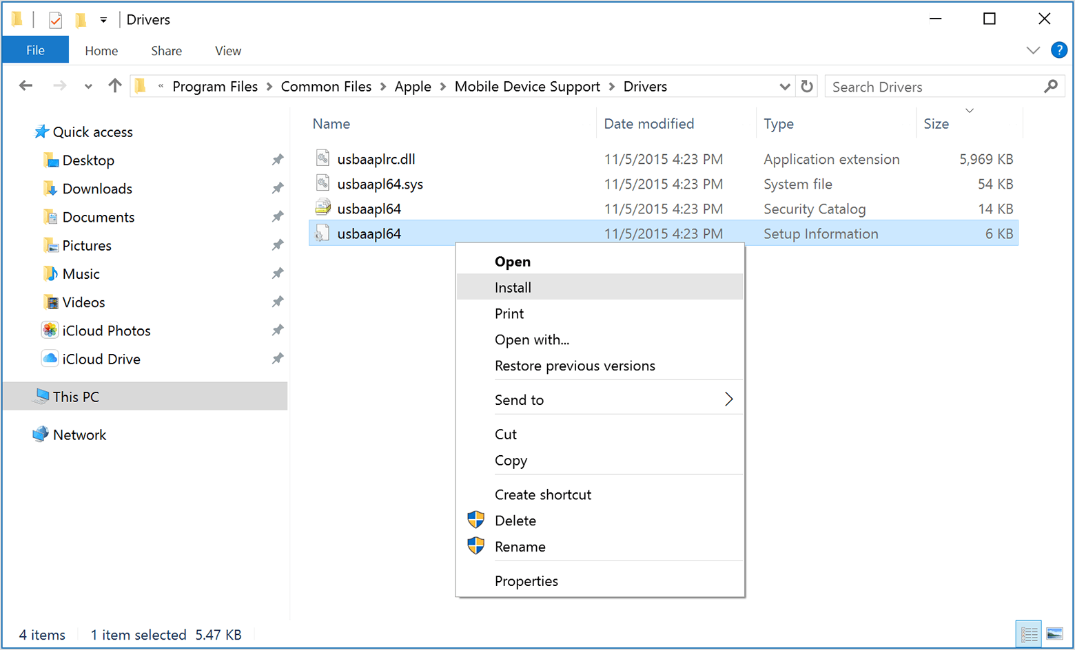usbaapl64.infилиusbaapl.infи выберите вариант «Установить».