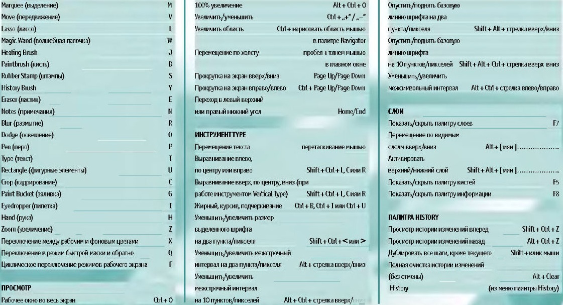 Я попробовал сделать выборку самых, на наш взгляд, востребованных в работе комбинаций клавиш для Photoshop, и составил этот топ-лист 20. Список получился очень удачным, и сейчас мы рекомендуем его на и .