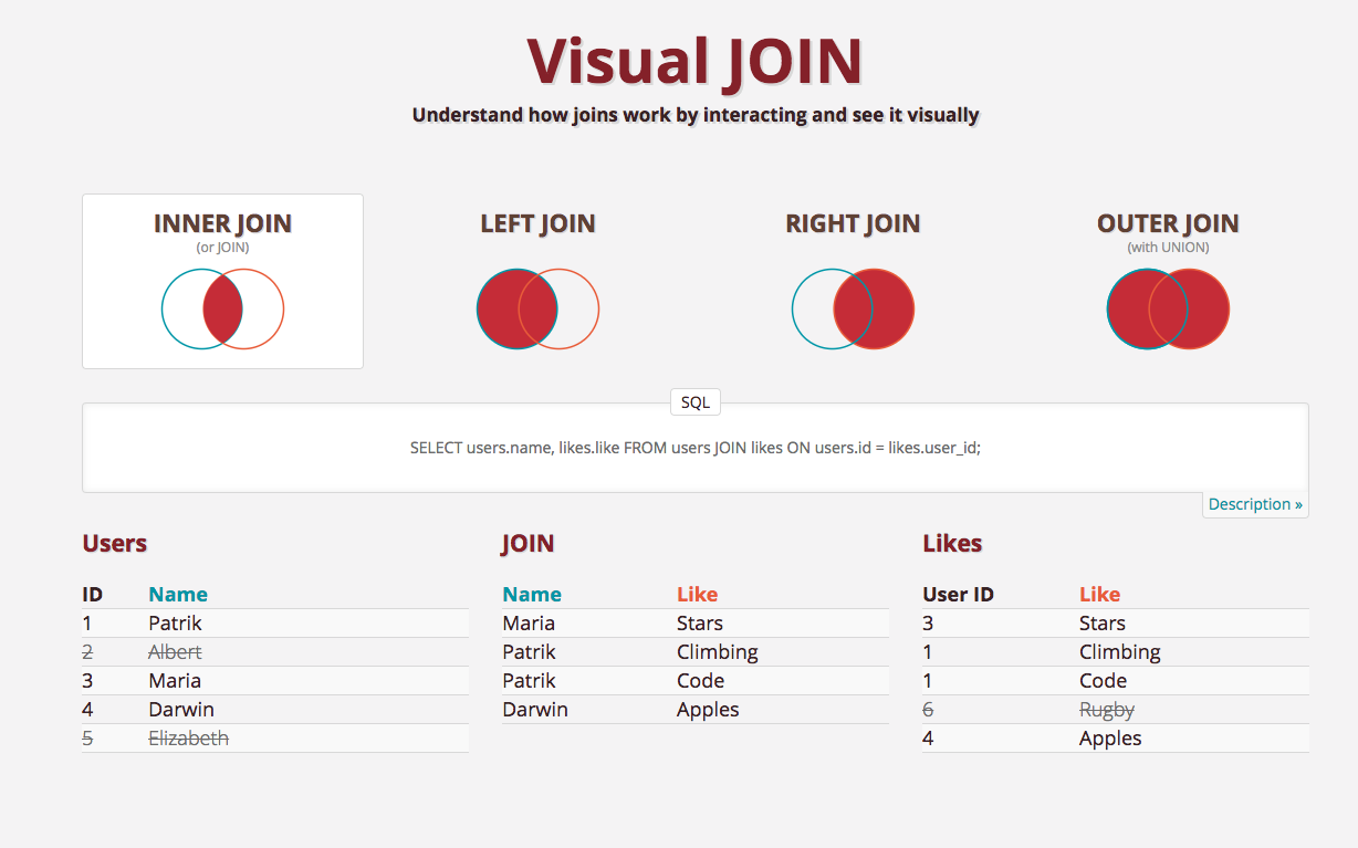 В MySQL выборку с помощью JOIN можно производить разными способами. Мы постараемся рассмотреть все эти виды запросов. Вот список всех запросов с участием JOIN: